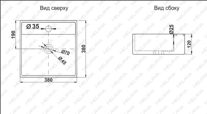 Раковина накладная (38х38) Melena 7063D-805