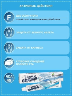 Pasta del Capitano Зубная паста Plaques & Cavities / Против налета и кариеса 100 мл