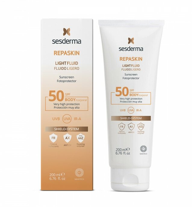 Флюид нежный солнцезащитный для тела Sesderma СЗФ 50, 200 мл, REPASKIN LIGHT FLUID Body sunscreen SPF50