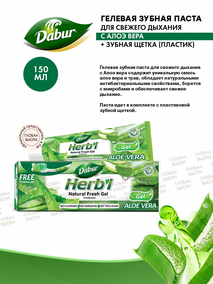 Dabur Herb'l зубная паста ALOE VERA Natural Fresh Gel /Хербл алоэ (Алое) вера, Натуральный освежающий гель (зубная щетка в подарок)/ Дабур)/ 150 г.