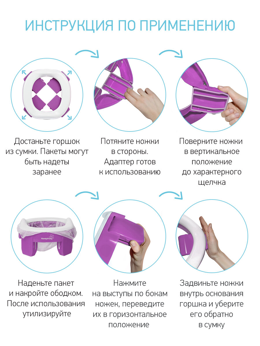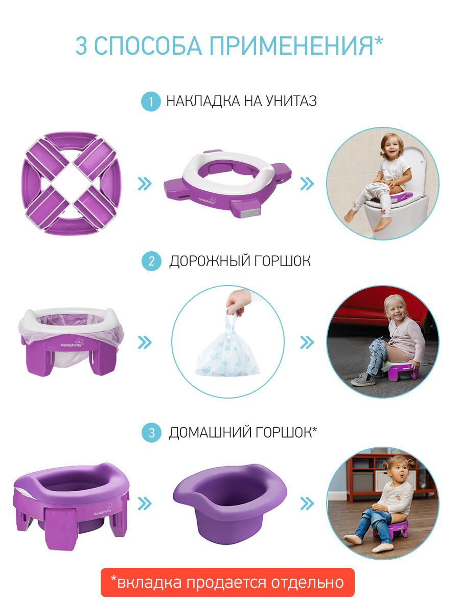 Горшок дорожный складной и насадка на унитаз Handy Potty от ROXY-KIDS с тремя пакетами, цвет фиолетовый
