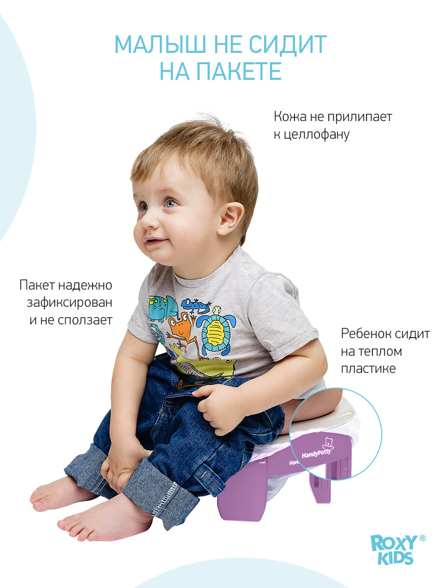 Горшок складной дорожный и насадка на унитаз HandyPotty от ROXY-KIDS с тремя пакетами, цвет лиловый