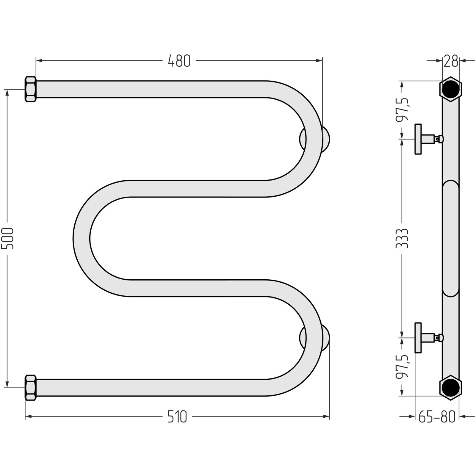 Водяной полотенцесушитель Сунержа М-образный+ 500х500 без покрытия