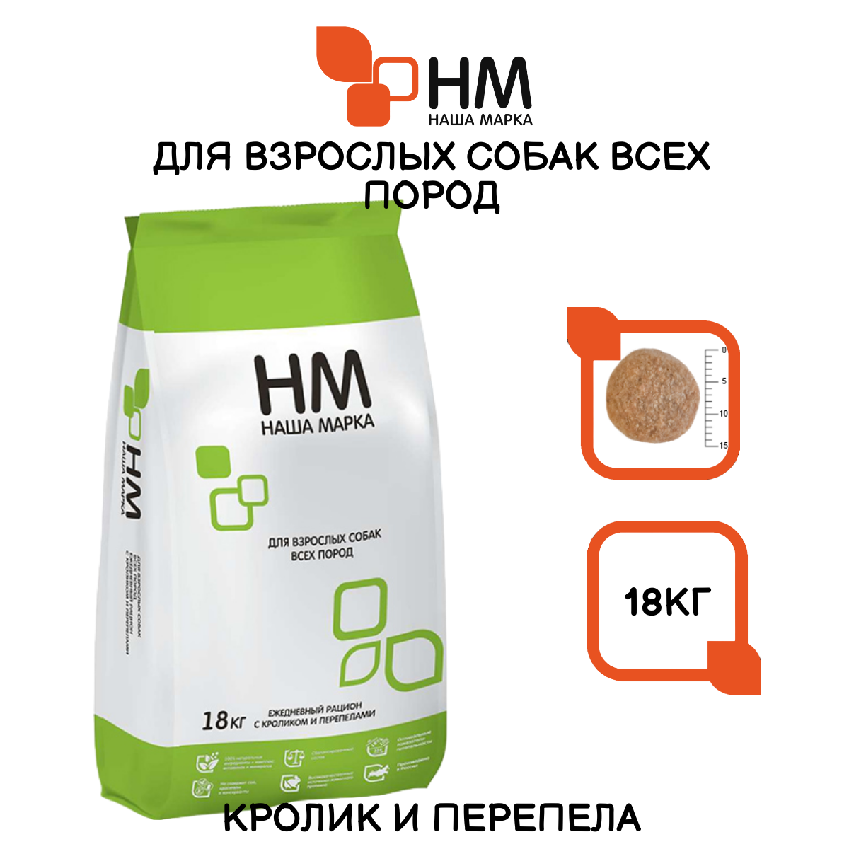 Наша Марка 18кг (д/взрослых) кролик+перепел сухой д/собак