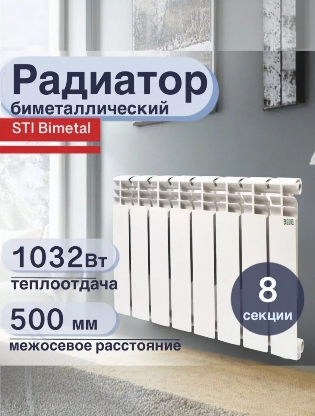 Радиатор секционный STI Bimetal 500/80, кол-во секций: 8, 10.32 м2, 1032 Вт, 624 мм.