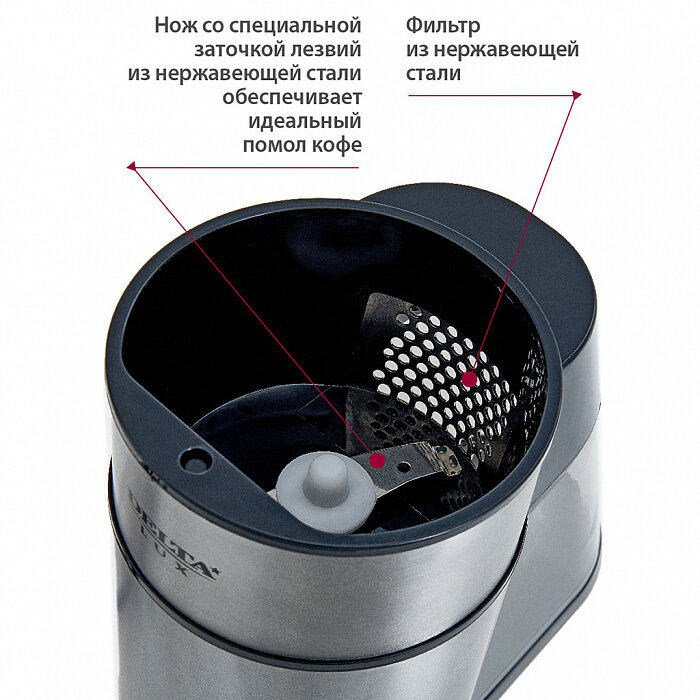 Кофемолка электрическая Delta Lux DL-086К, серебристый