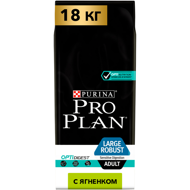 PRO PLAN ADULT DOG OPTIDIGEST LARGE ROBUST SENSITIVE DIGESTION для взрослых собак крупных пород мощного телосложения с чувствительным пищеварением с ягненком и рисом (14 кг)