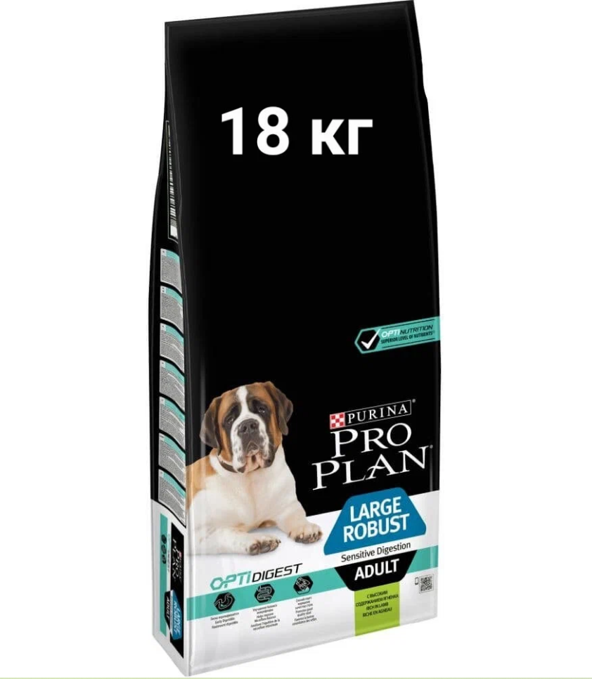 Сухой корм для собак с мощным телосложением Pro Plan Large Robust Sensitive при чувствительном пищеварении, ягненок 18 кг (для крупных пород)