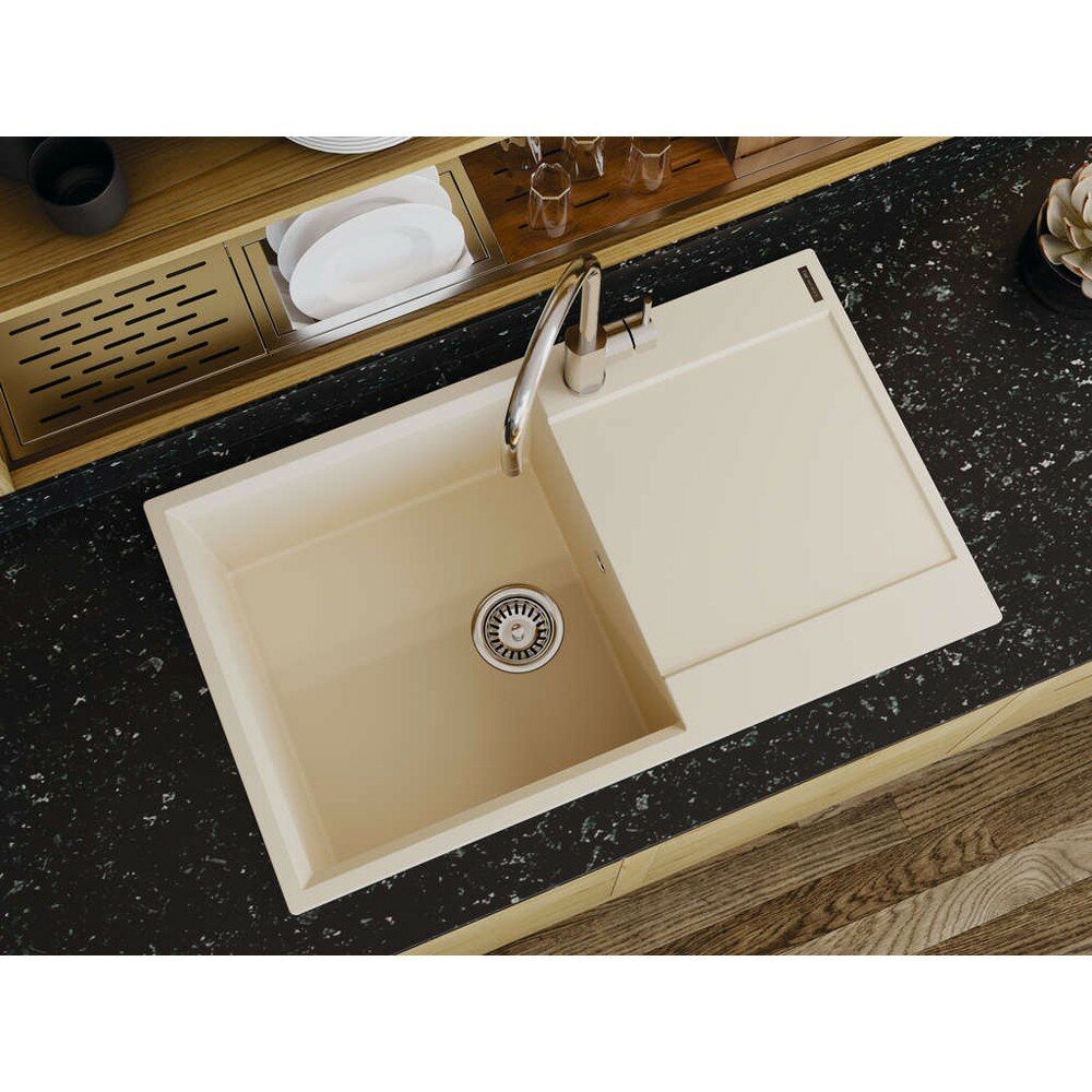 Кухонная мойка с крылом OMOIKIRI Daisen 86-BE, искусственный гранит/ваниль