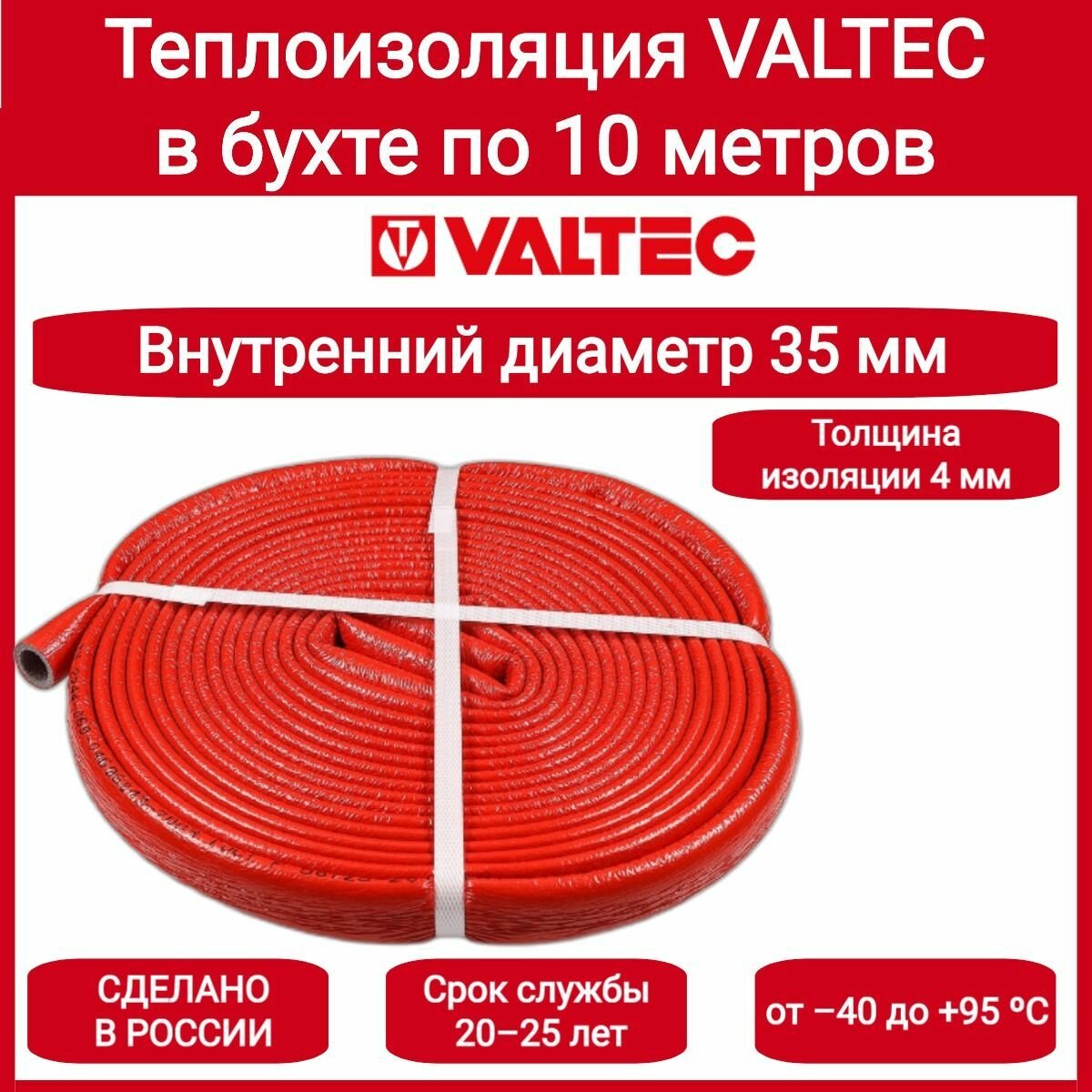 Трубная теплоизоляция VALTEC Супер Протект в красной оболочке 35/4 бухта 10м