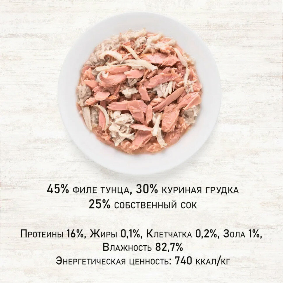 Консервы для кошек Grandorf Holistic Филе тунца с куриной грудкой в собственном соку, 70 г х 6 шт.
