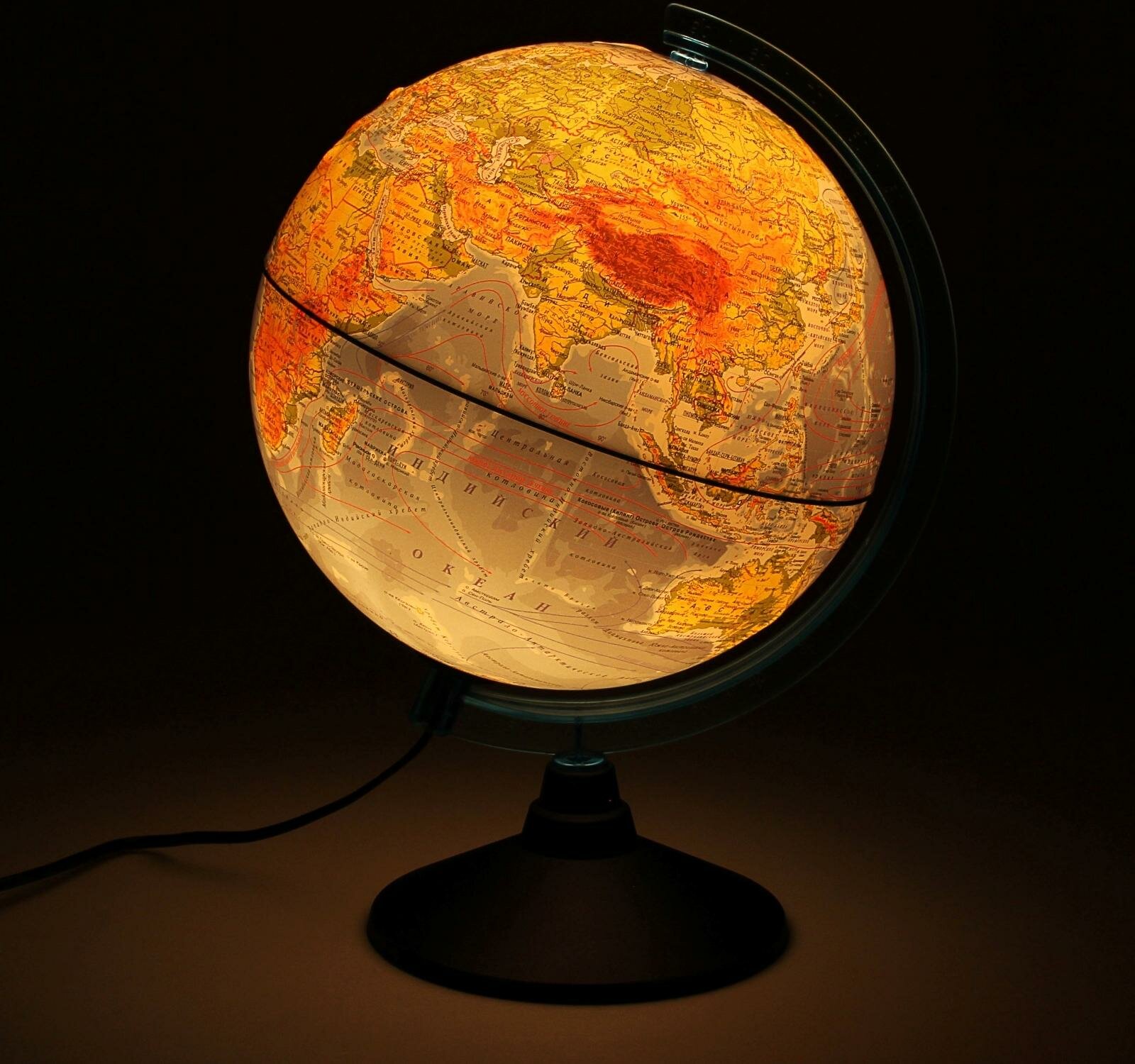 Глoбус физический рельефный "Классик Евро", диаметр 250 мм, с подсветкой интересное:
