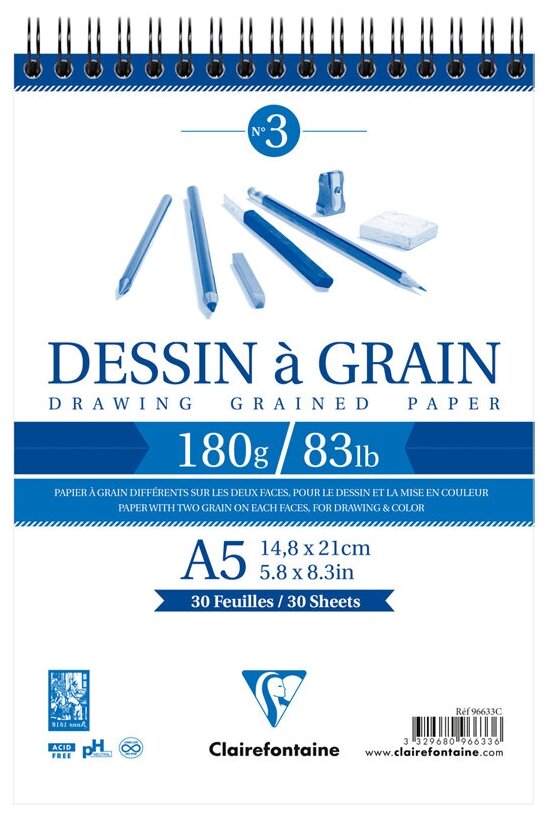 Скетчбук 30л., А5 Clairefontaine Dessin a grain, на гребне, 180г/м2, мелкозернистая ( Артикул 320104 )