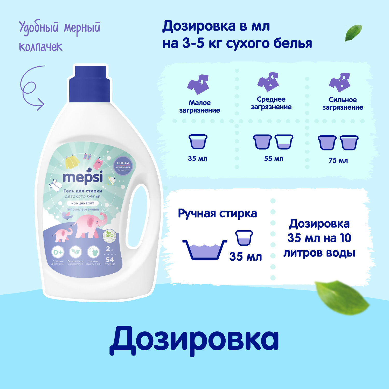 Гель для стирки на 25 стирок MEPSI белья детский 1л. 0+. Жидкий порошок для детского, черного, цветного, белого белья