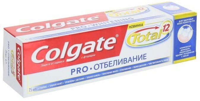 Зубная паста Colgate, Total 12 Профессиональная Отбеливающая, 75 мл