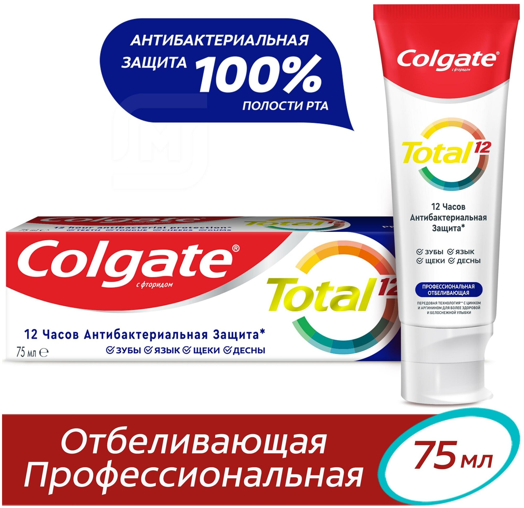 Colgate Зубная паста Total 12 Профессиональная Отбеливающая комплексная антибактериальная, 75 мл - 1 шт