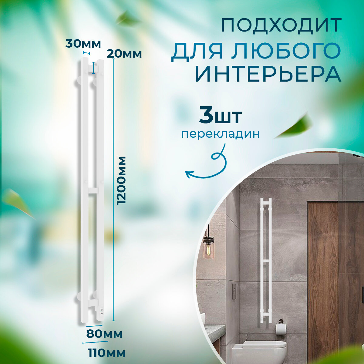 Полотенцесушитель электрический Laris Прайм Дуэт ЧК 80/1200 белый правое подключение регулятор на стойке