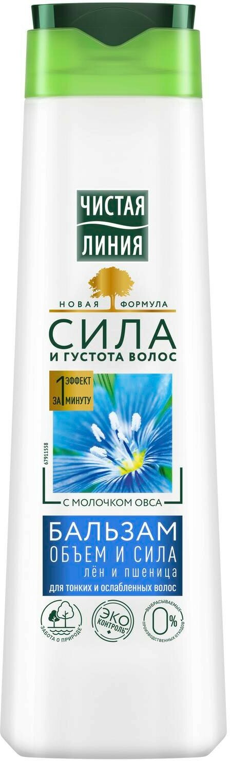 Бальзам-ополаскиватель для волос Чистая Линия Объем и сила для тонких волос с экстрактами льна и пшеницы 380мл