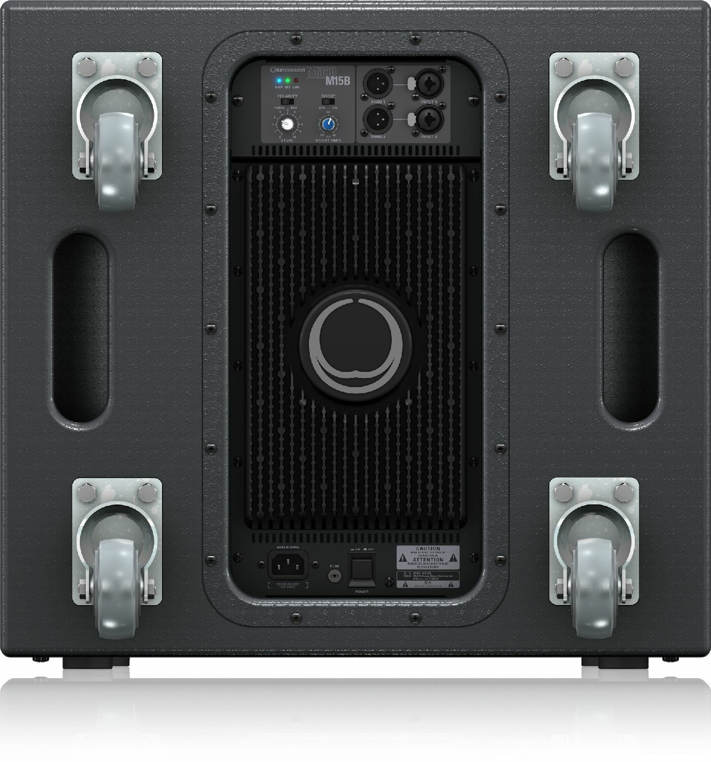 Turbosound MILAN M15B активный сабвуфер, 15", 2200Вт макс, 35–150Гц -10дБ, 134дБ SPL, берёзовая фанера, колёса