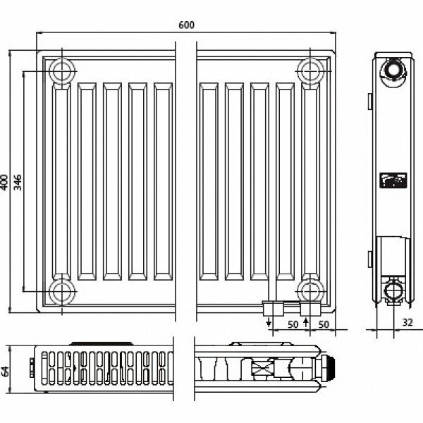 Радиатор панельный KERMI Profil-V_FTV тип 12 высота 400 ширина 600 профильный, нижнее подключение 3/4"
