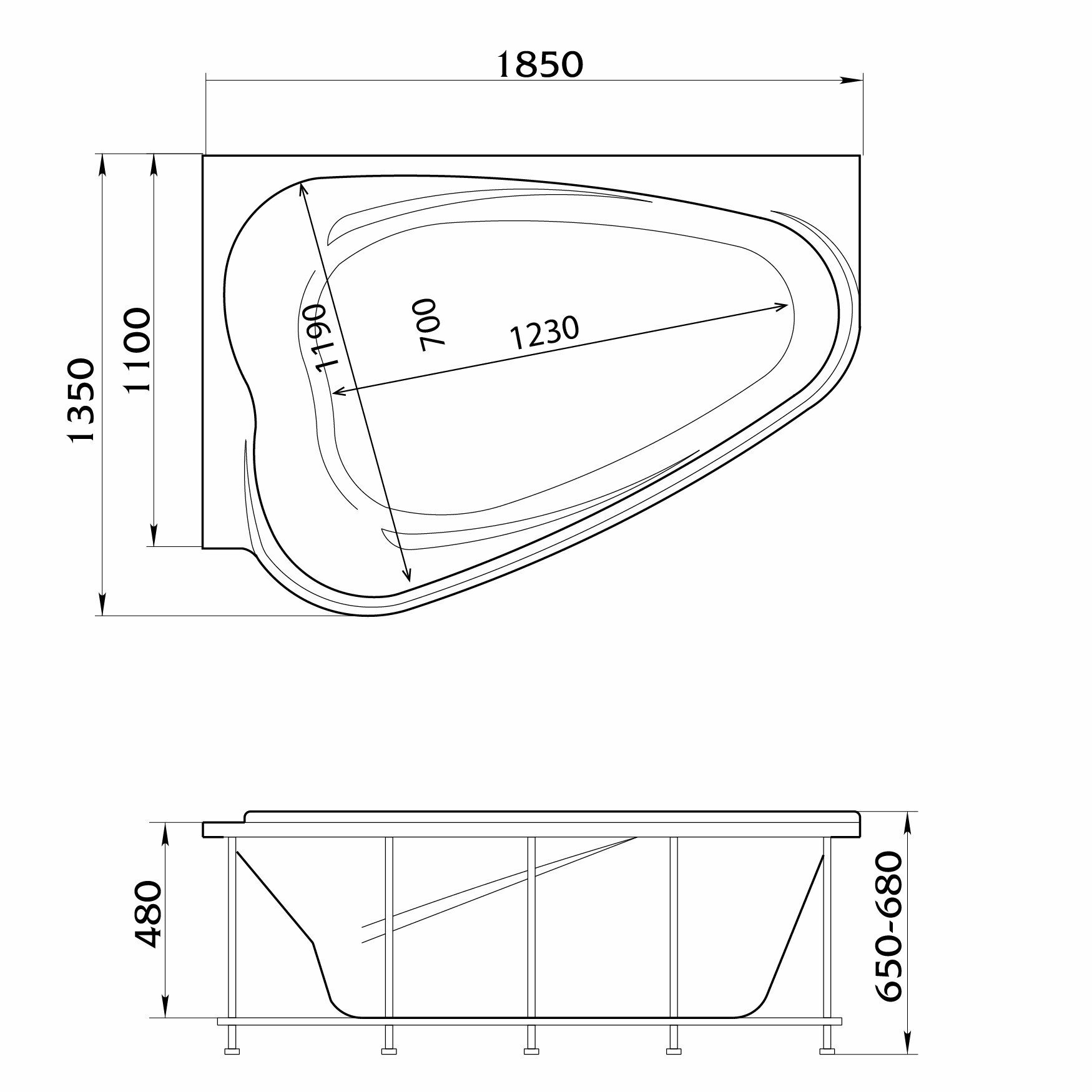 Акриловая ванна 185х135 см R Marka One Love 01лв1813п