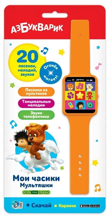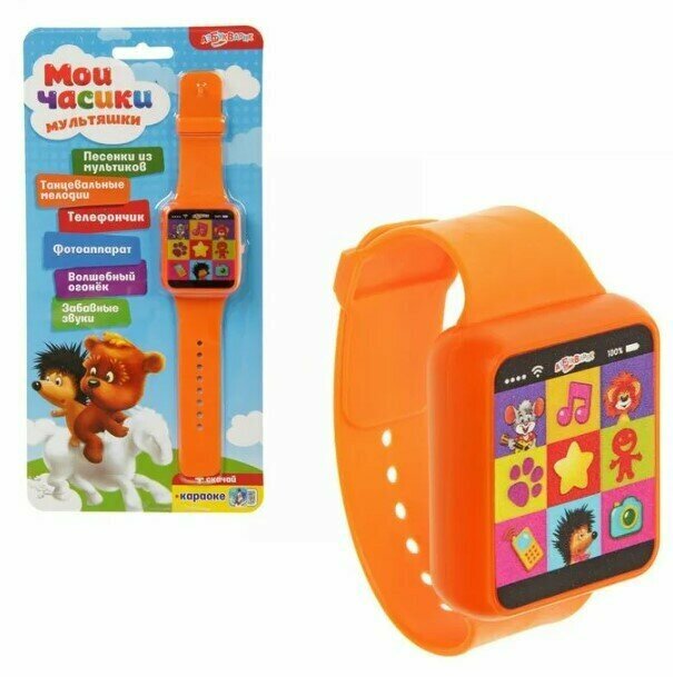 Музыкальная игрушка - Мои часики Мультяшки, цвет оранжевый, 1 шт.