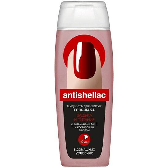 Жидкость для снятия гель-лака Antishellac Защита и питание с витамином А и Е и касторовым маслом, 110 мл
