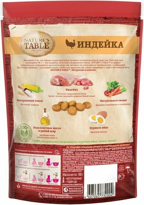 Natures Table Сухой корм для кошек с индейкой, 10179267, 0,19 кг, 25405