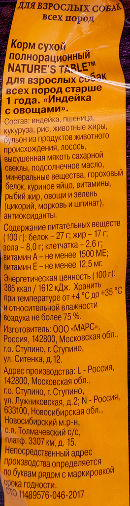 Купить 10179263 NATURE`S TABLE д/взрослых собак Индейка с овощами 2.3кг