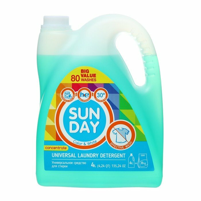 Sunday Жидкое средство для стирки Sunday для цветного и белого, универсальный 4 л