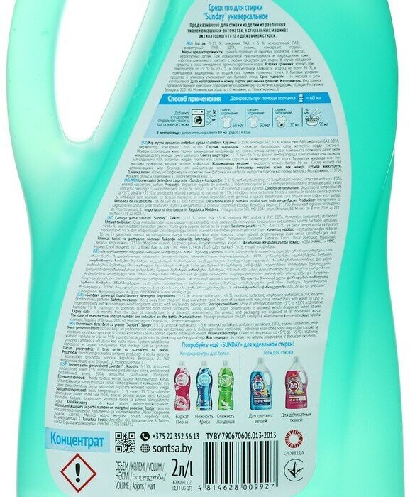 Ниже Вы можете прочитать отзывы на Жидкое средство для стирки Sunday для цветного и белого, универсальный 2 л, ознакомится с подробными характеристиками, посмотреть интересные обзоры и фотографии на Жидкое средство для стирки Sunday для цветного и белого, универсальный 2 л.