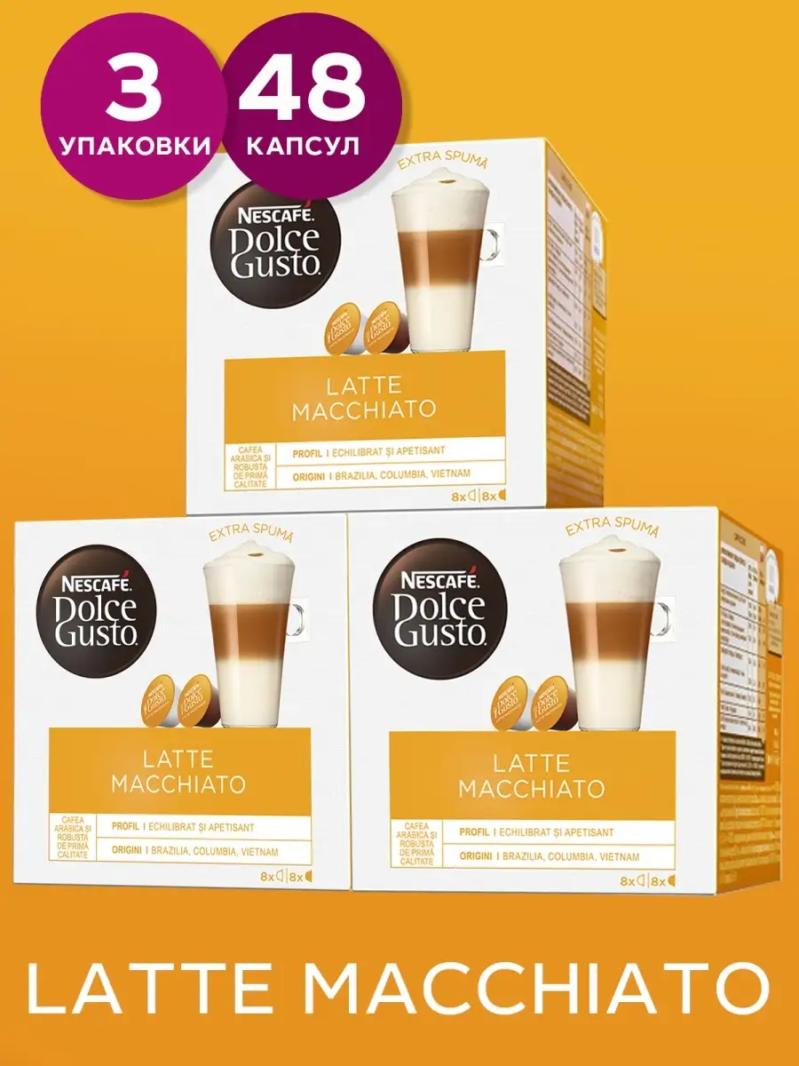Кофе в капсулах Nescafe Dolce Gusto Latte Macchiato, 16 кап. в уп., 3 уп.