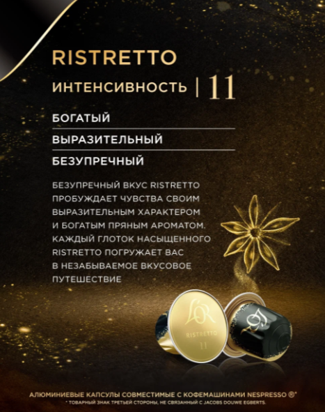 Кофе в алюминиевых капсулах L'or Espresso Ristretto, для системы Nespresso, 10 штук, 52 г