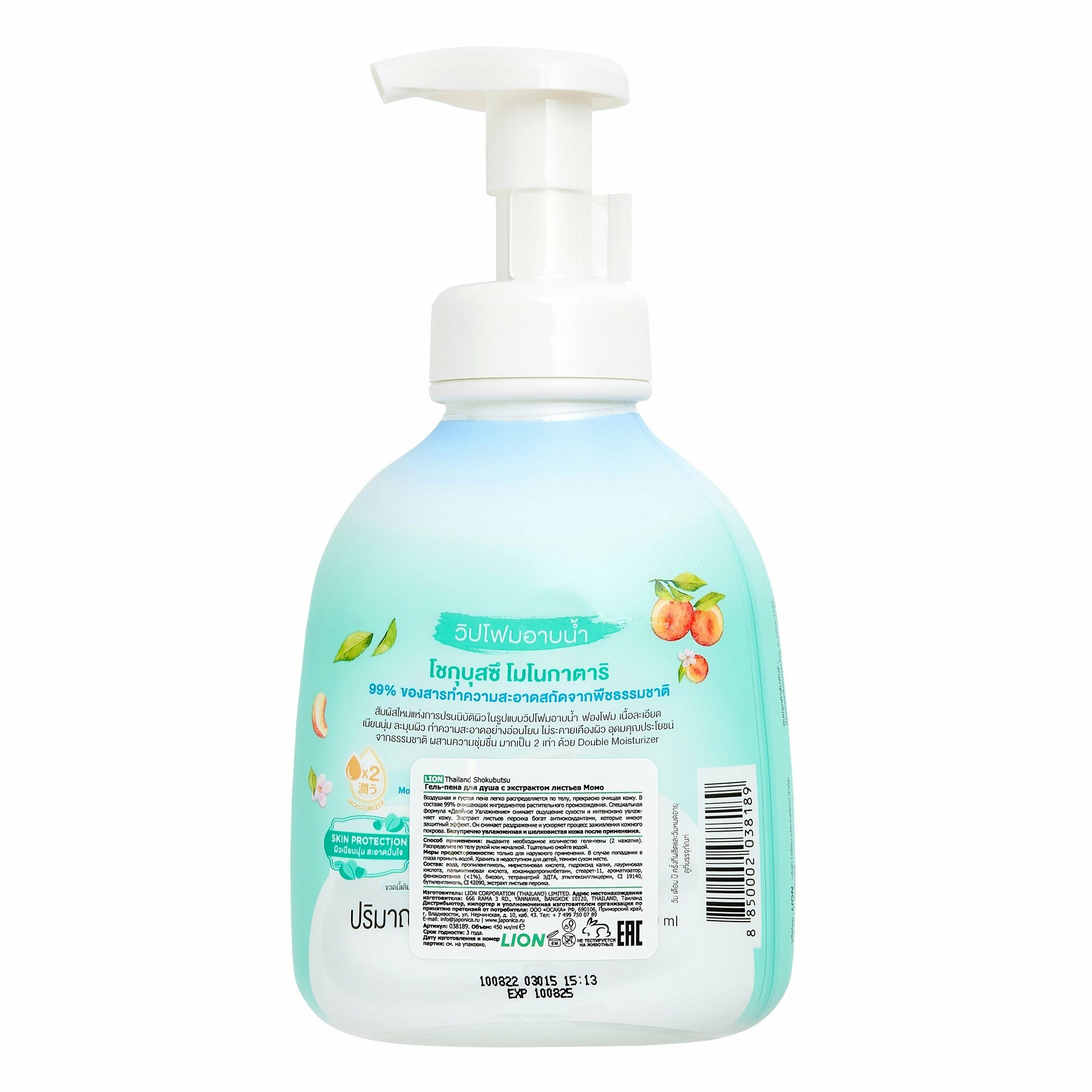 Гель для душа Lion 450мл экстракт листьев момо пенка Thailand Shokubutsu япония 8850002038189