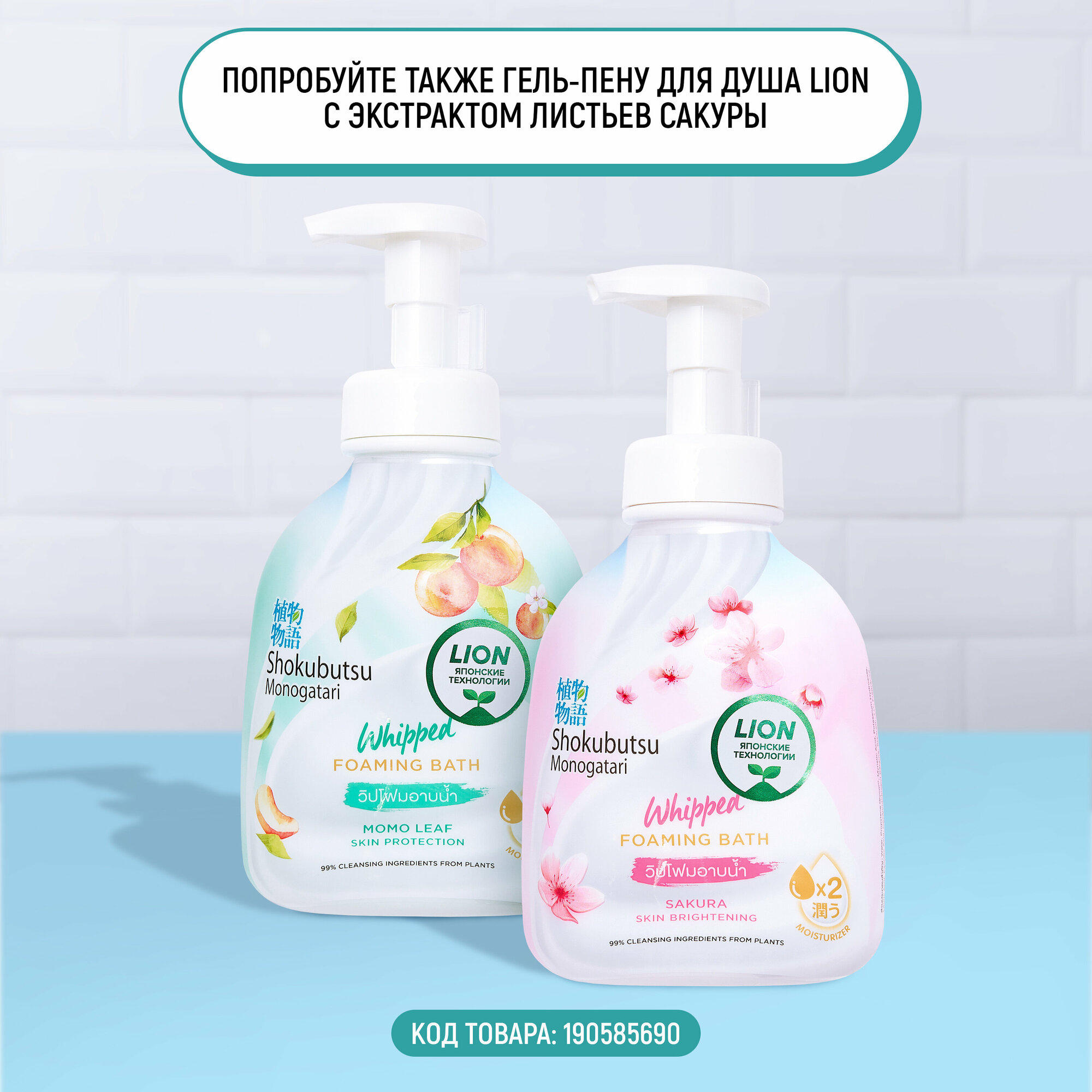 LION Thailand Гель-Пена Shokubutsu для Душа с Экстрактом Листьев Момо, 450 мл