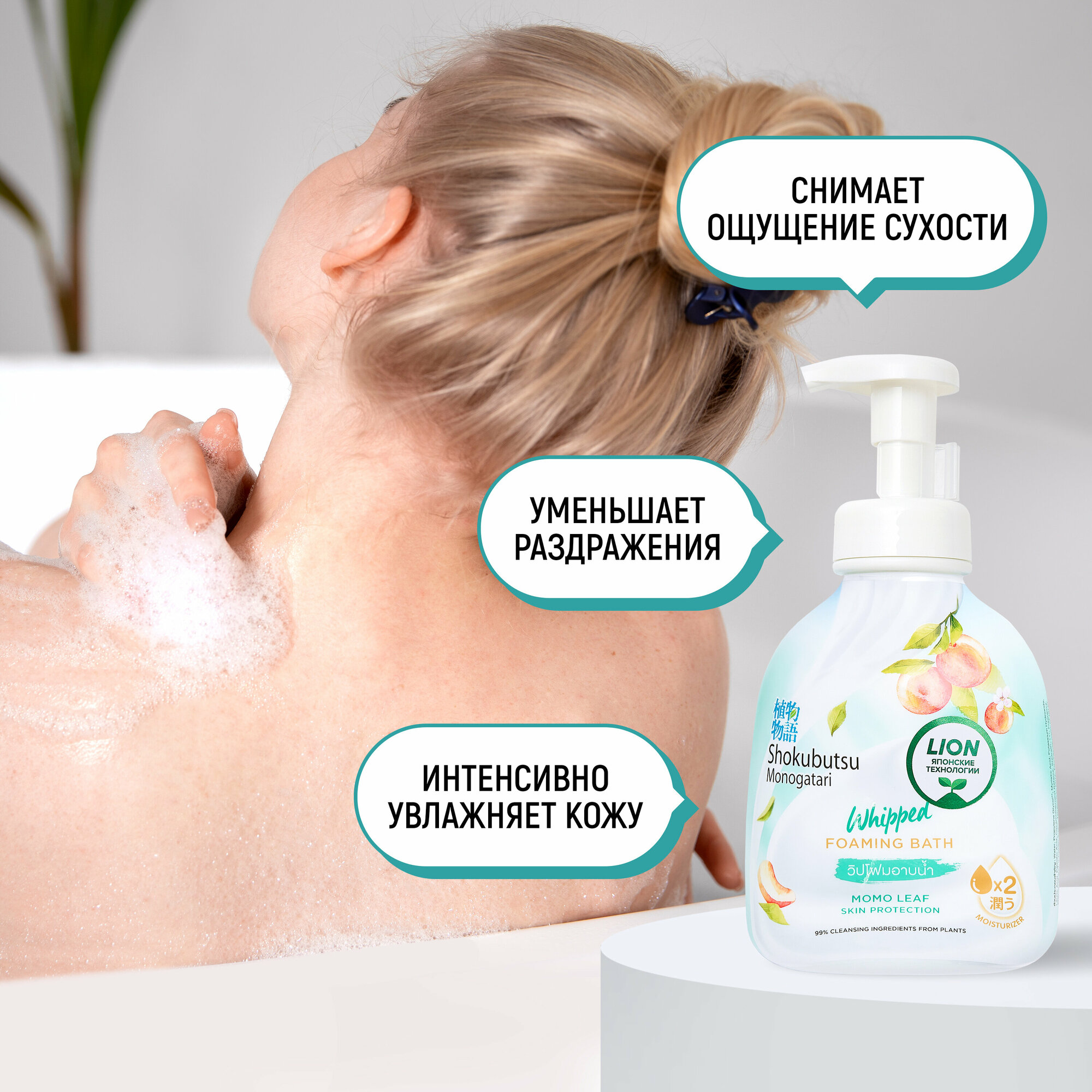 Shokubutsu whip foam momo leaf густая гель пена для душа, защита кожи, 450 мл