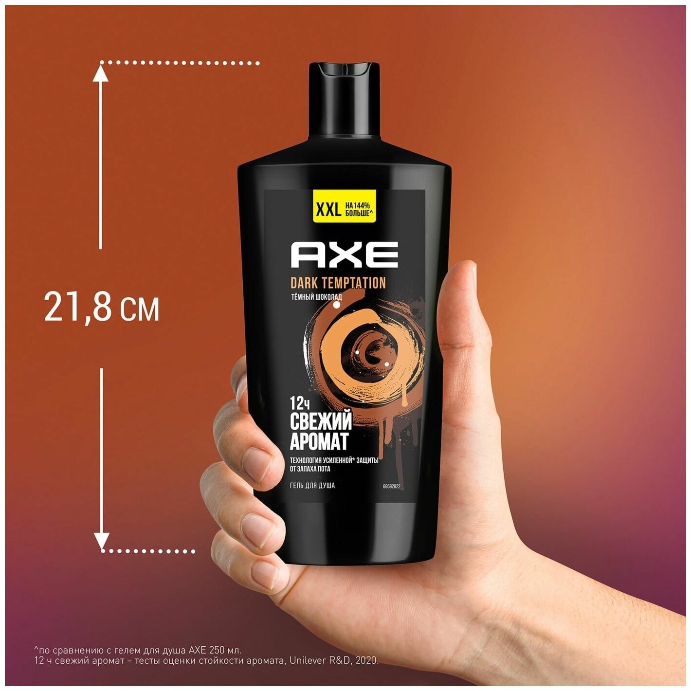 AXE DARK TEMPTATION мужской гель для душа с защитой от запаха пота на 12 часов и топовым ароматом шоколада 610 мл