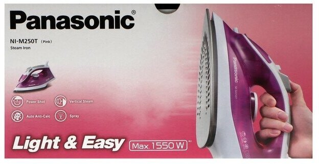 Утюг Panasonic Ni-m 250TPTH Pink, 1550 Вт, 15 г/мин, пар удар 75 г/мин, 210 мл, розовый Panasonic 98 .