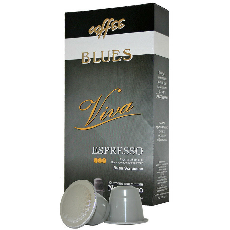 Кофе в капсулах кофе блюз BLUES Эспрессо Вива 10 капсул (для кофемашин Nespresso)