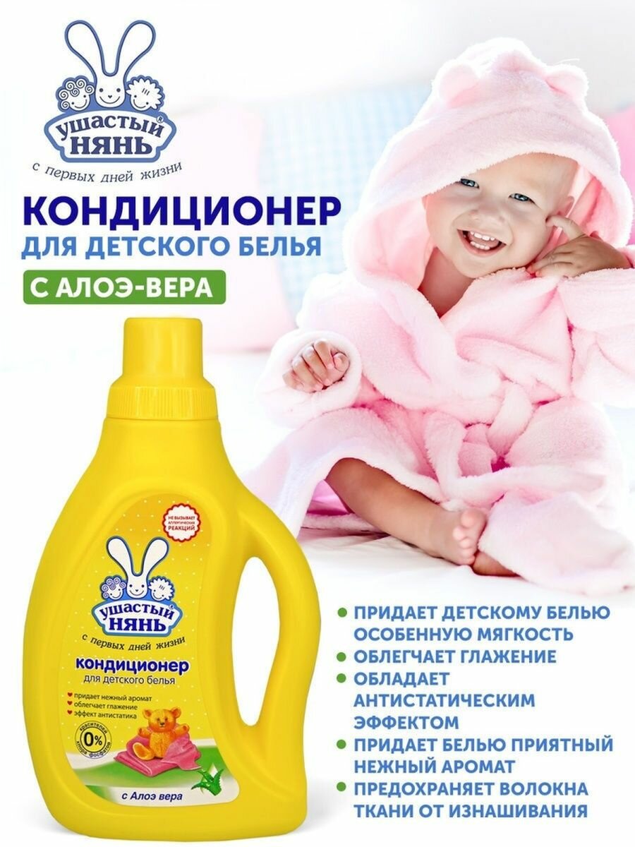 Кондиционер для детского белья, Ушастый нянь, с Алоэ вера, 1 л