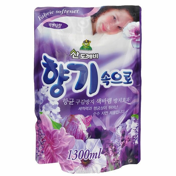 Кондиционер ополаскиватель для белья Корея, Sandokkaebi Soft Aroma 1300 мл с ароматом лаванды, мягкая упаковка