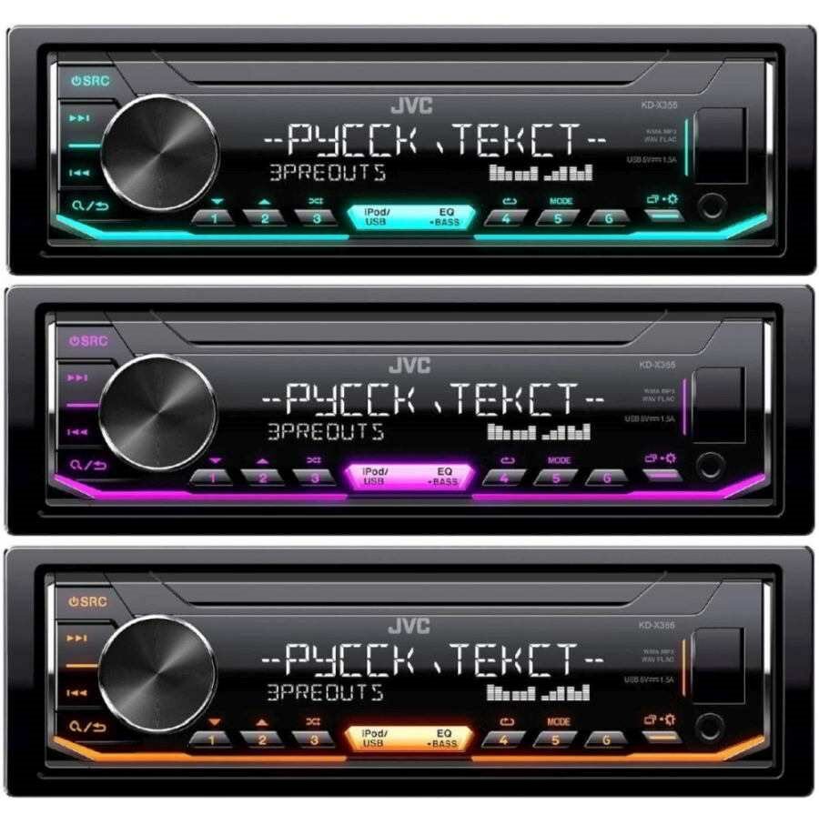 Автомагнитола JVC KD-X355 / Multi Color, USB, FLAC, 3RCA, 13-полосный графический эквалайзер. K2 тех