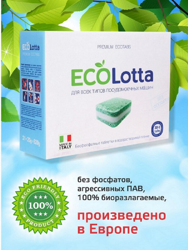Эко таблетки для посудомоечной машины ECOLotta без фосфатов 30шт