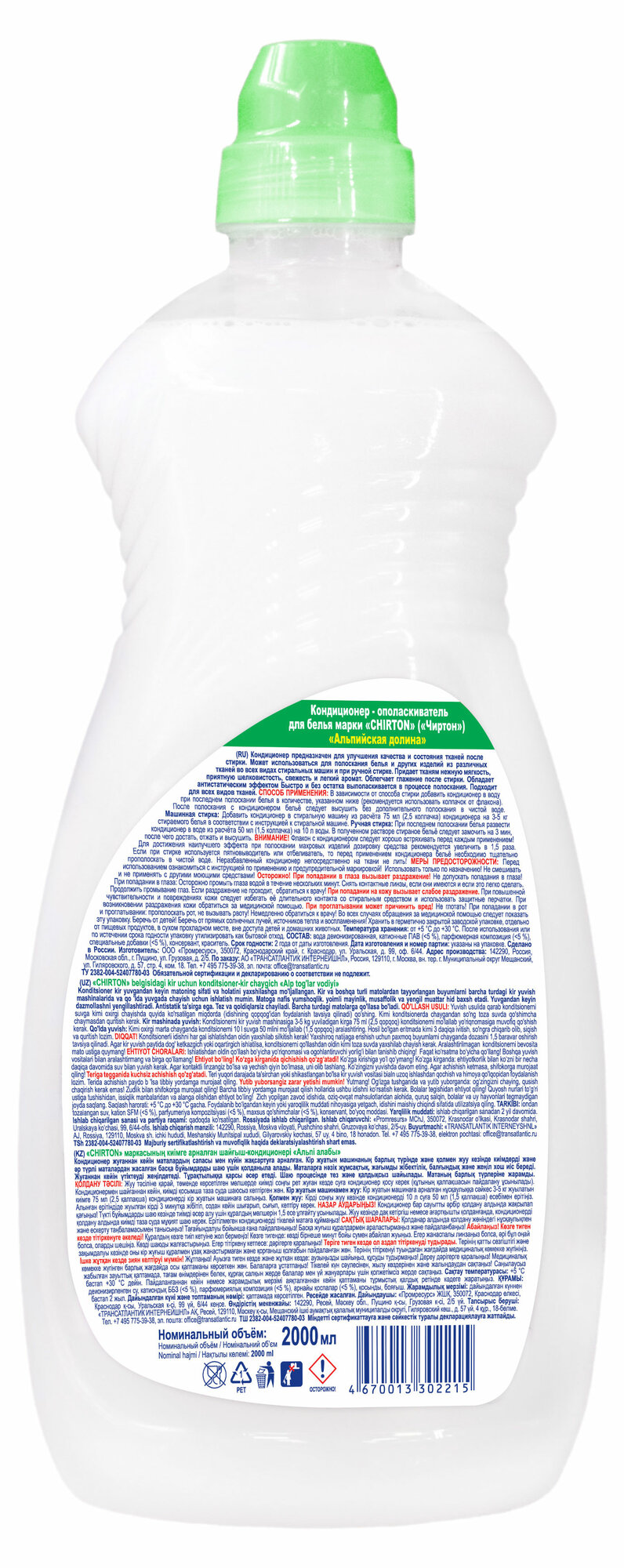 Кондиционер-ополаскиватель д/белья 2л CHIRTON (Чиртон) "Альпийская долина", ш/к 02215
