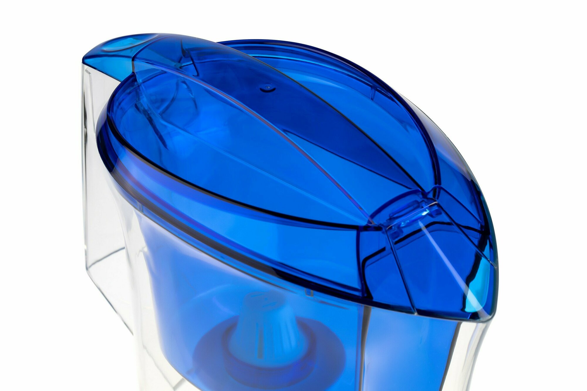 2) Ёмкость приёмного резервуара (делал 4 замера, переливая всю воду в мерный стакан) всего 850 мл - без опасности перелива водопроводной воды в сам кувшин или max 950 мл - когда наливаешь "вплотную" по верх передней кромки приёмного резервуара, с опасностью перелива ! 3) Верхняя крышка неудобная и негерметичная - трудно попасть передними острыми краями крышки в "треугольники" резервуара, а в плотно-закрытом состоянии, при условии, что не вся вода отфильтровалась и Вы наливаете её в кружку, - водопроводная вода потихоньку перетекает в сам кувшин с чистой водой ! |
