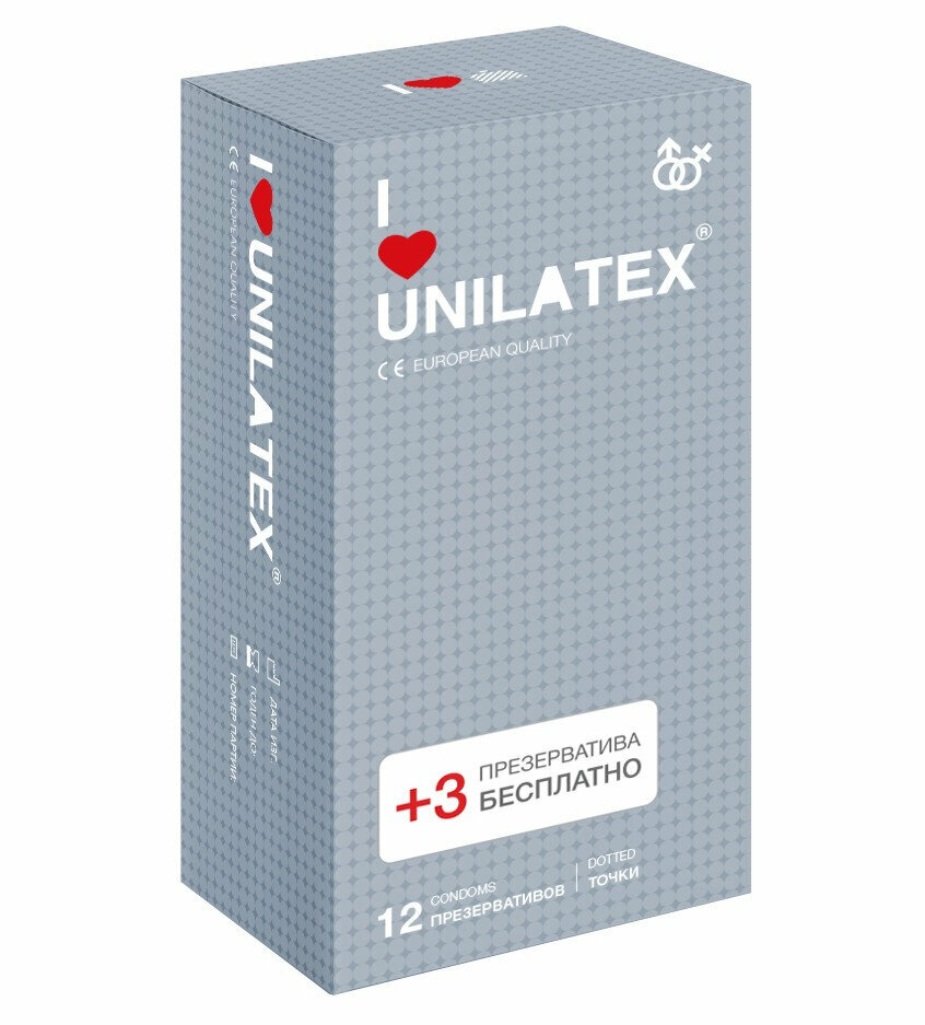 Презервативы UNILATEX DOTTED 12+3 ШТ В подарок