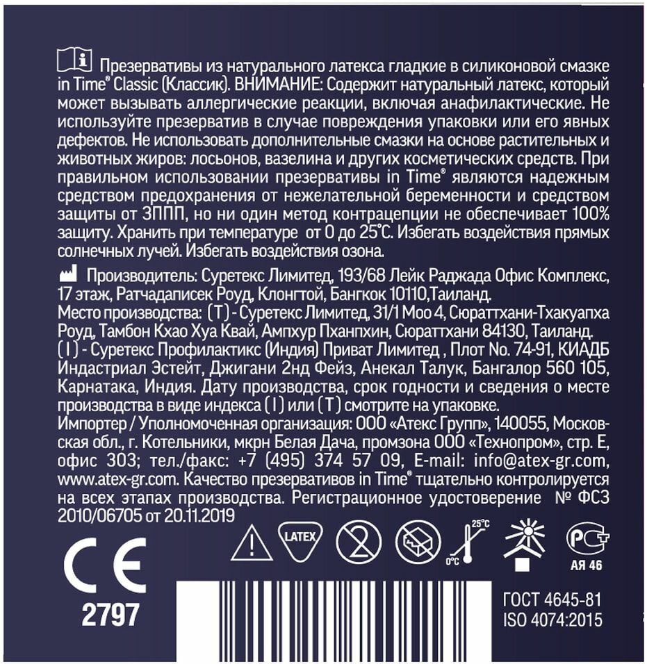 Презервативы Ин Тайм классические x3 Атекс Групп