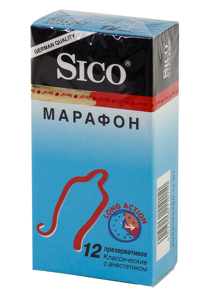 SICO Презервативы Марафон, классические, с анестетиком, 12 шт