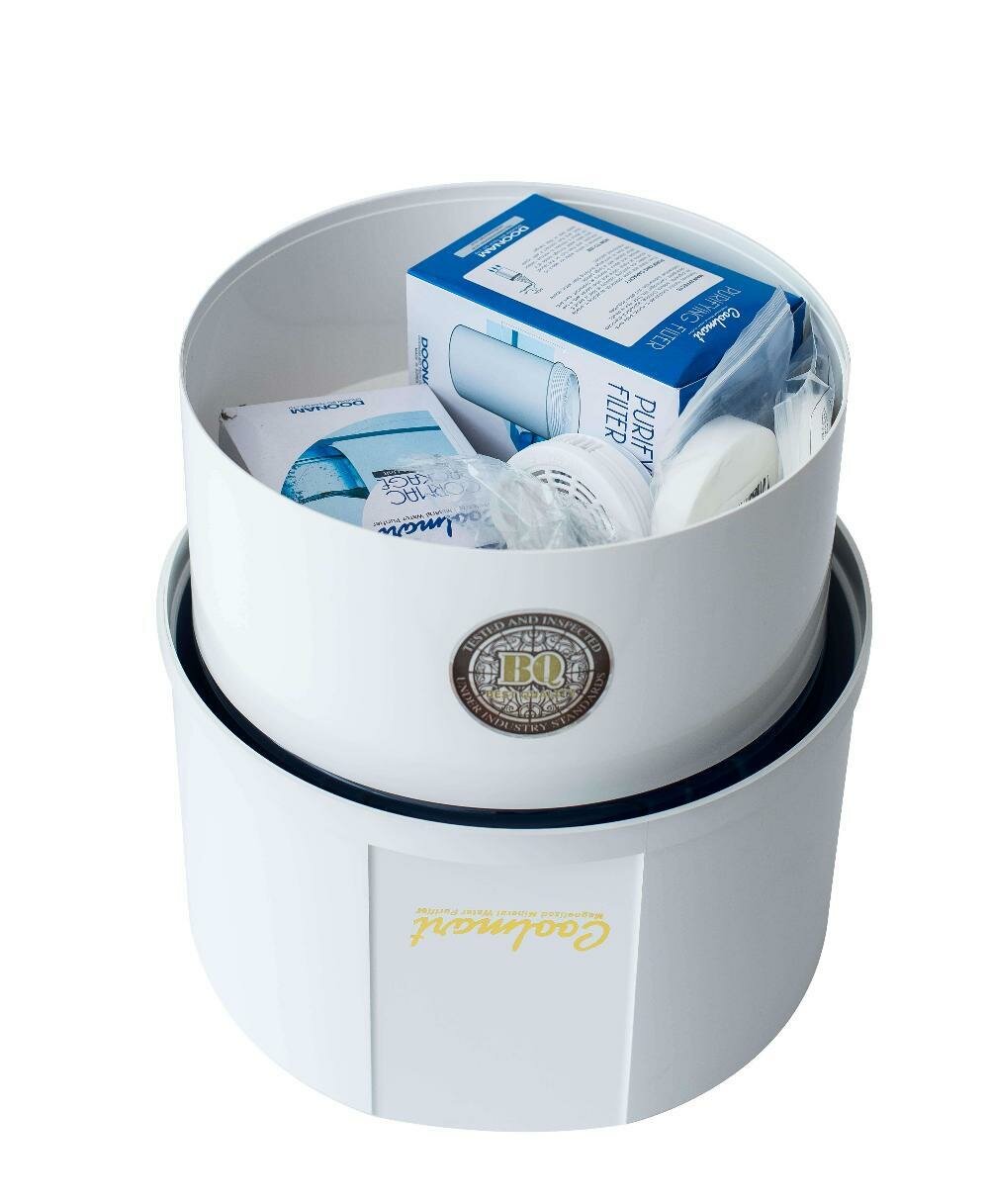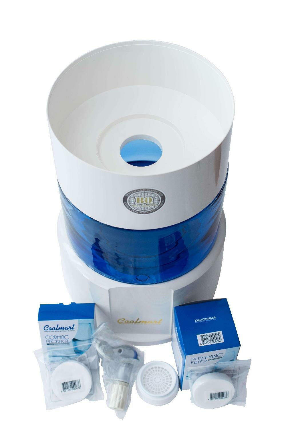 | Дополнительная информация | может быть оснащена как микрофильтром, так и керамическим фильтром; емкость верхнего резервуара 6 литров; нижний резервуар - стекло; имеет бактерицидную стадию очистки |