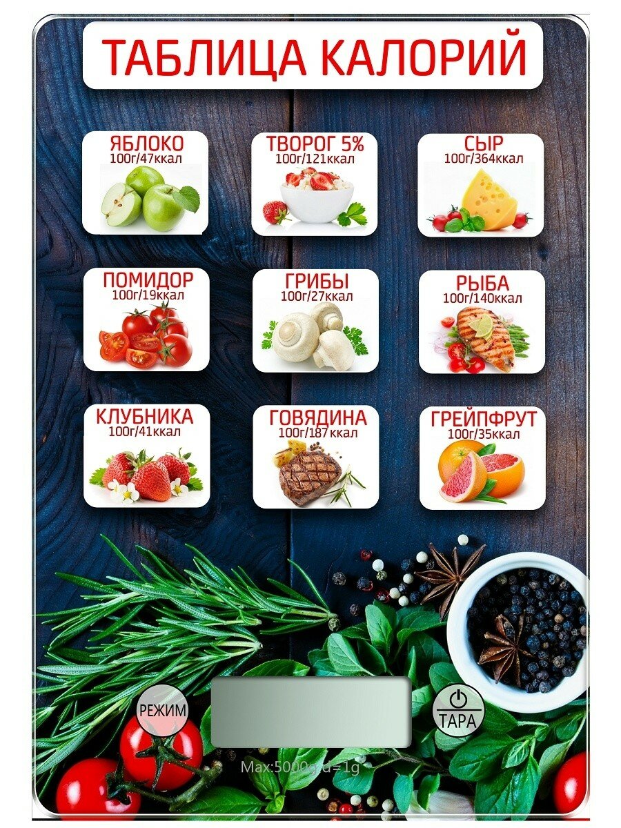 Весы электронные кухонные Kelli 1543 , 5кг "Таблица колорий"